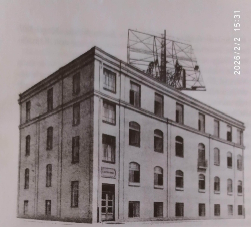 A Tungsram kutatólaboratóriuma, tetején a holdradarvisszhang-kísérletben használt antennával. Forrás: Fizikai Szemle