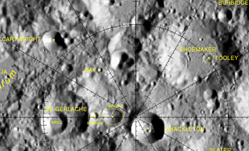 A Hold déli pólusa környékén található az újonnan elnevezett, pici, 3,5 km átmérőjű Bay-kráter.