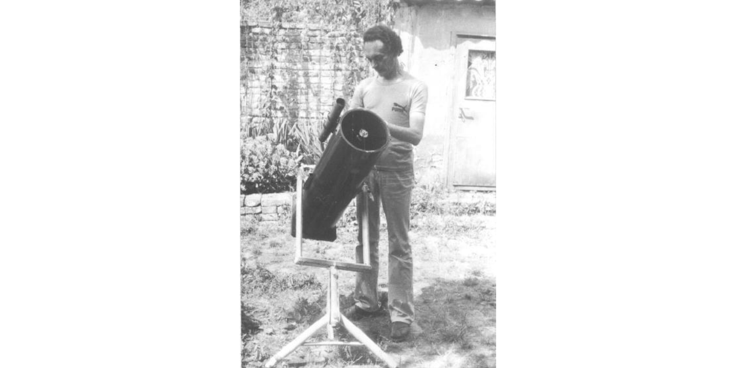 Szentmártoni Béla a saját építésű 19 centiméteres reflektorával – Horváth Tibor